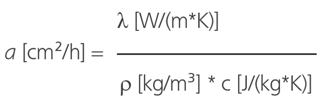 - Im mniejsza dyfuzja cieplna „a” [m2/s], tym mniej nagrzewa się materiał budowlany.