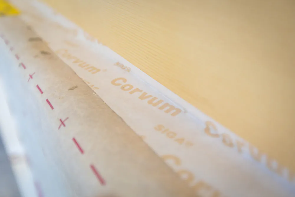- jako taśma do uszczelniania połączeń płyt drewnopochodnych (OSB, MFP) w narożnikach