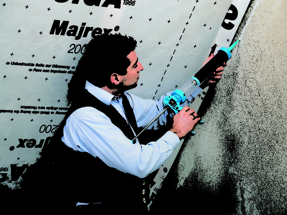 - szczególnie jako masa do przyklejania membran paro- i wiatroizolacyjnych do innych elementów budowlanych, np. przyklejanie membrany paroizolacyjnej do otynkowanej murowanej ściany szczytowej