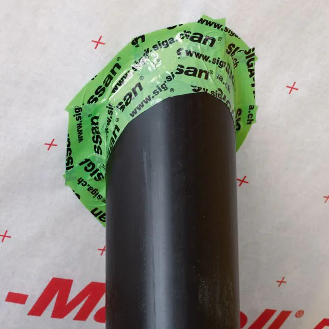 • jako taśma do szczelnego sklejania połączeń między membraną paroizolacyjną czy wiatroizolacyjną, a innymi elementami budynku