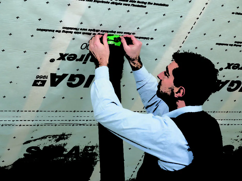 • jako taśma do szczelnego sklejania połączeń między arkuszami membrany paroizolacyjnej czy wiatroizolacyjnej np. SIGA Majrex 200 czy STEICOmulti renova