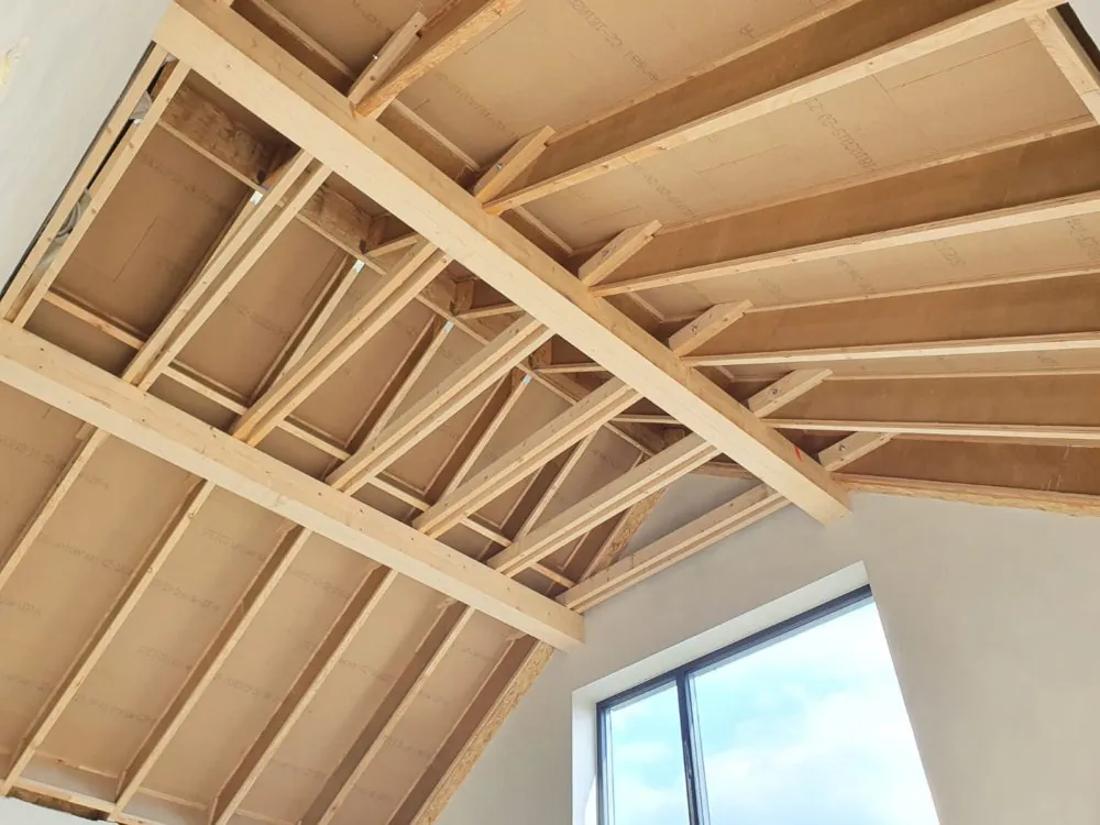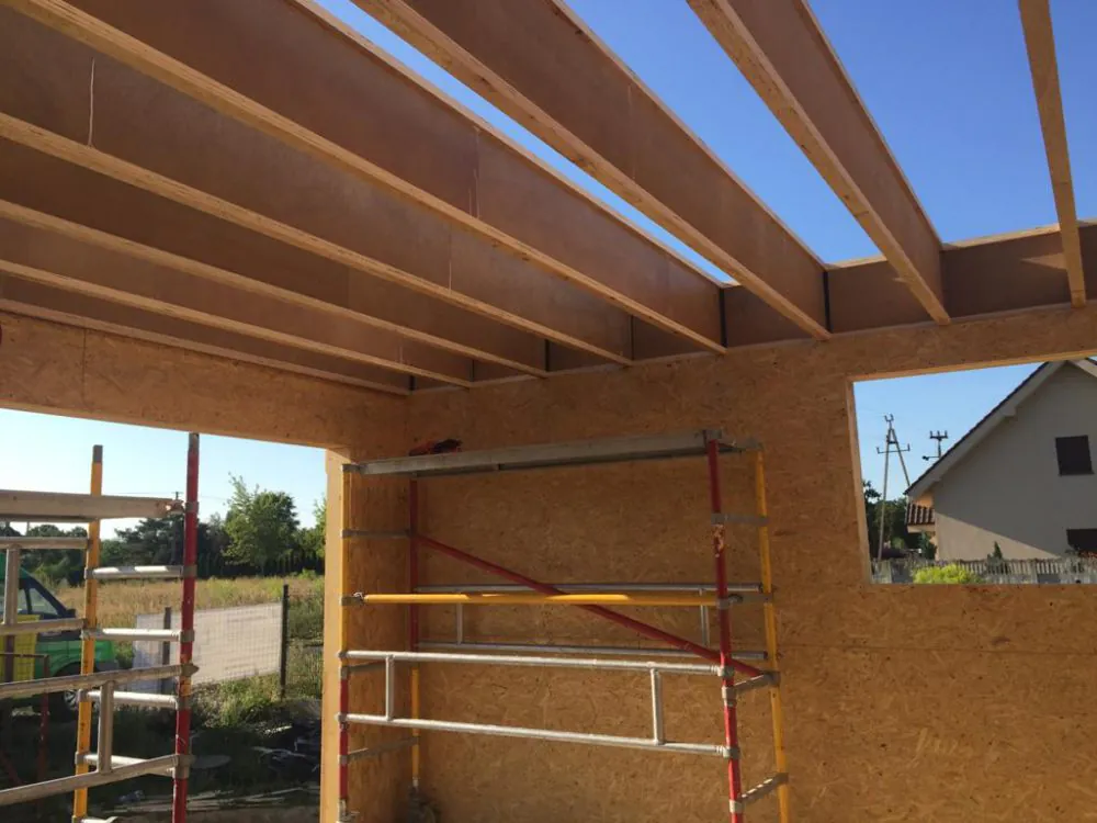 - Tańszy koszt montażu – belki dwuteowe są znacznie lżejsze niż tradycyjne drewno C24. Nie potrzebujesz dźwigu. Płacisz mniej za każdą godzinę pracy dźwigu;