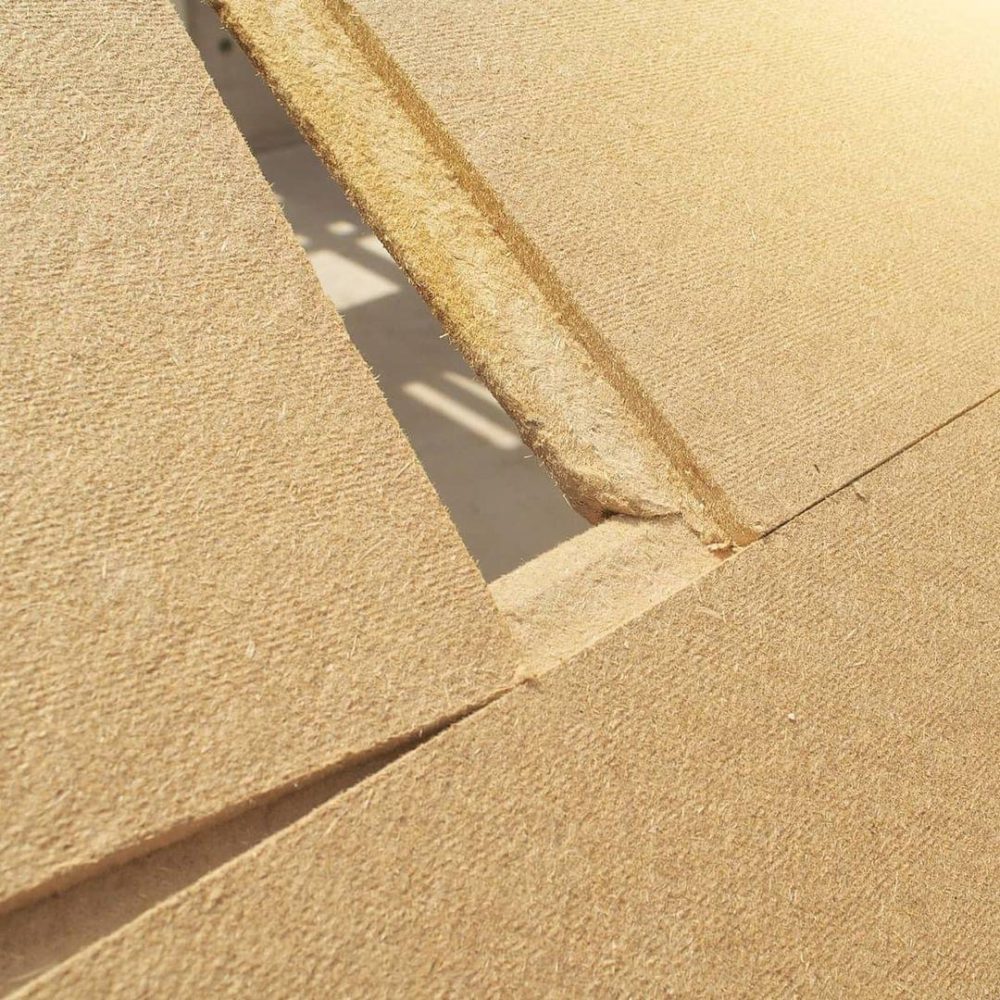 Dzięki połączeniu płyt systemem pióro wpust, przy dachach o kącie nachylenia nie mniejszym niż 16 stopni, nie ma konieczności stosowania dodatkowej membrany wiatroizolacyjnej powierzchniowo na izolacji STEICOuniversal, ani też nie jest wymagane doszczelnianie profili-łączeń.