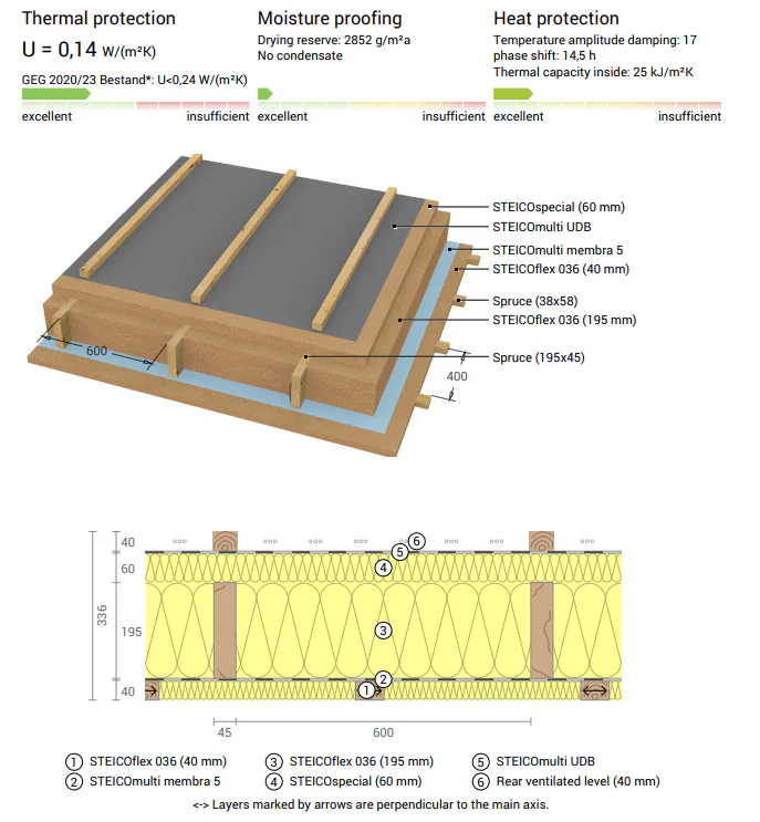 • Kontrłaty na zewnątrz i łaty do rusztu instalacyjnego do wewnątrz.