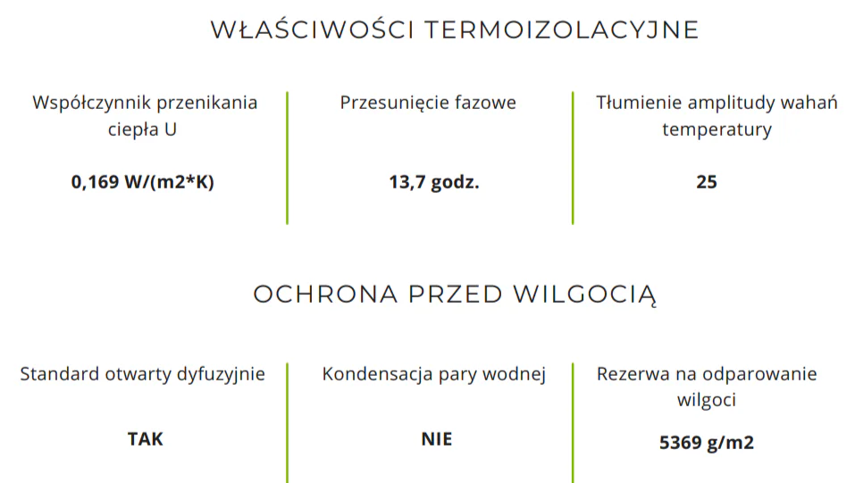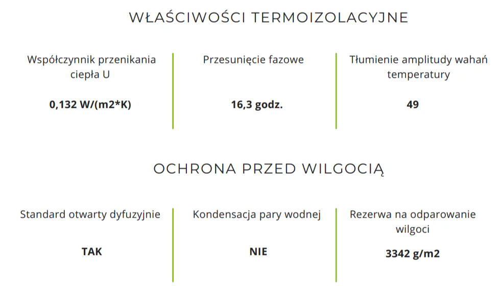 Materiały wyselekcjonowane pod kątem najwyższej jakości, zapewniające trwałość, bezpieczeństwo oraz optymalną izolację termiczną, akustyczną, szczelność powietrzną oraz otwartość dyfuzyjną.